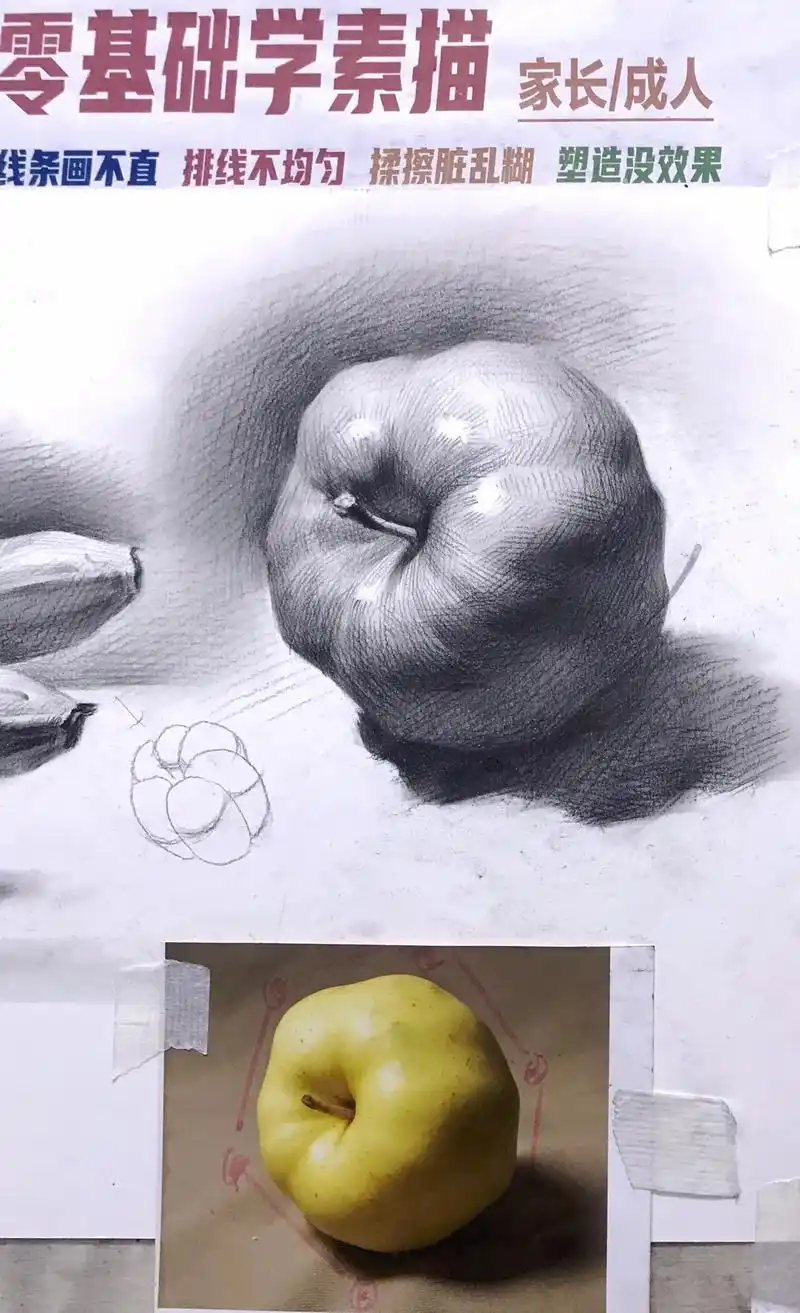 素描静物单体苹果的画法步骤.##零基础学画画 #素描静物 # - 抖音