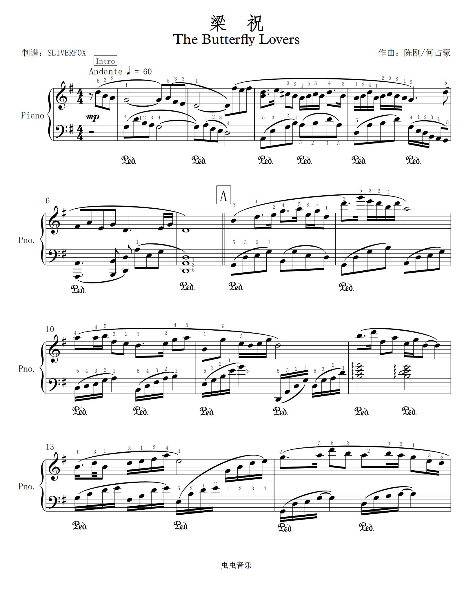 梁祝(简易版)钢琴谱-c调-虫虫钢琴