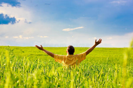 阳光田野里的男人照片
