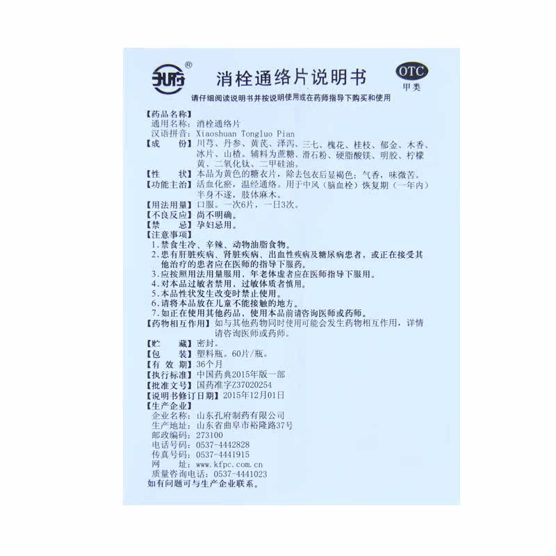 孔府 消栓通络片 60片 活血化瘀治疗中风脑血栓半身不遂肢体麻木