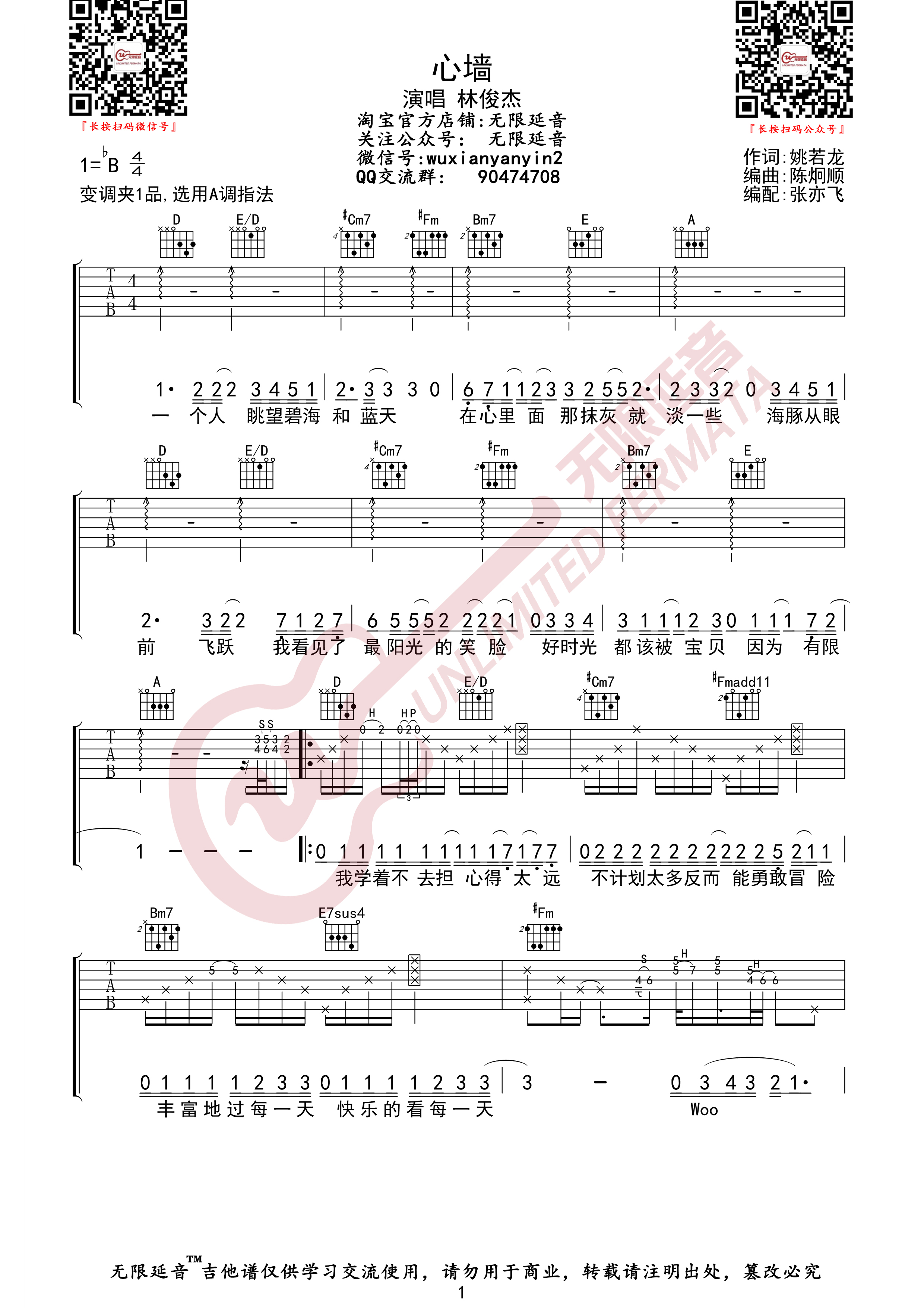 心墙(无限延音编配)吉他谱(图片谱,林俊杰,心墙,吉他谱)_林俊杰(jj)