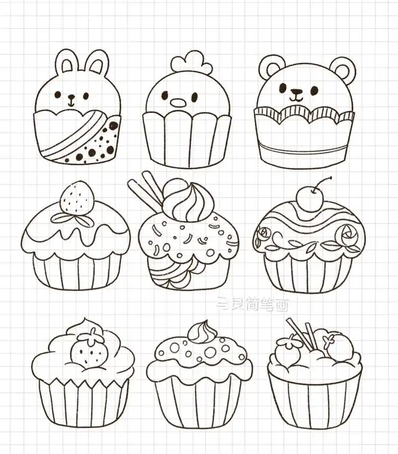 简笔画|草莓樱桃纸杯蛋糕甜点甜品手帐素材 零基础绘画|简笔画教程