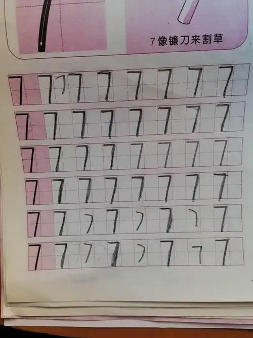 中二班停课不停学之今日小任务:在田字格本上复习《数字宝宝7》各书写