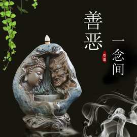 善恶一念间倒流烟香炉创意摆件 陶瓷达摩释迦摩尼观音