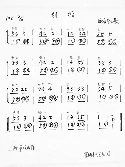 划船简线混排(线,简谱混排版) 少儿曲谱
