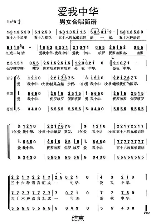 爱我中华男女合唱歌词简谱
