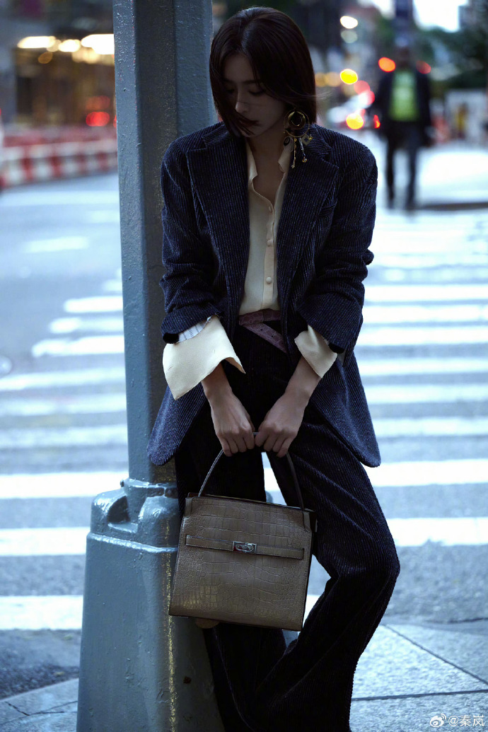 近日,秦岚身着一套灯芯绒西装现身纽约时装周,其高贵优雅的气质吸引了