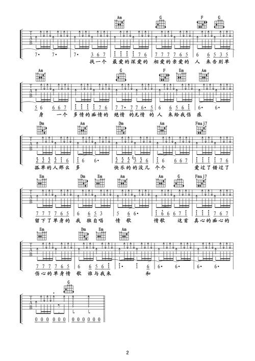 单身情歌c调六线吉他谱-虫虫吉他谱免费下载