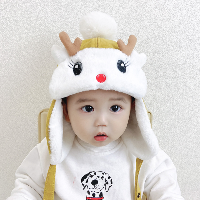 男宝宝帽子冬季加绒保暖女可爱小鹿雷锋帽韩版儿童护耳帽婴儿圣诞