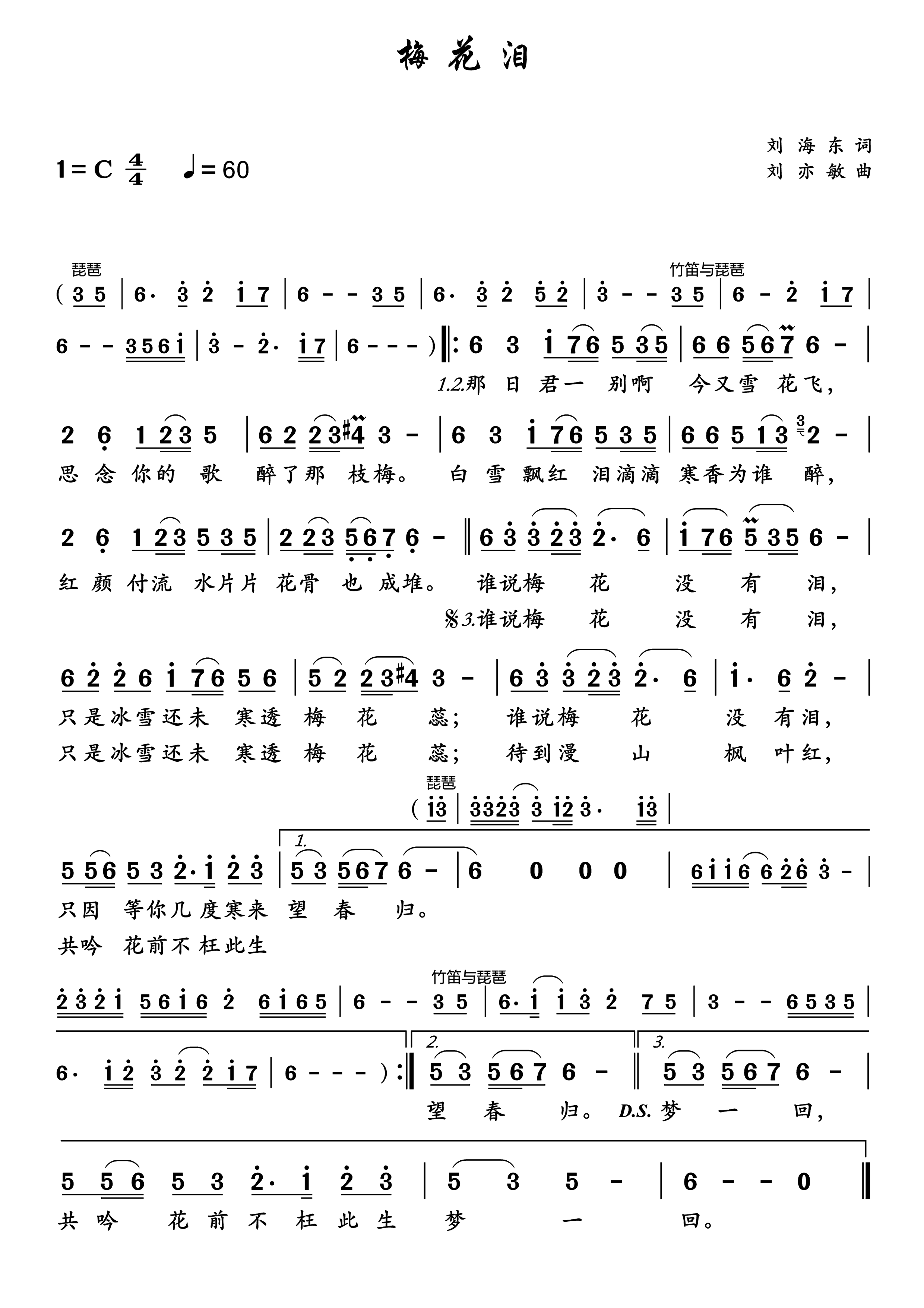 梅花泪(高清)简谱-文希演唱-杨居文曲谱1