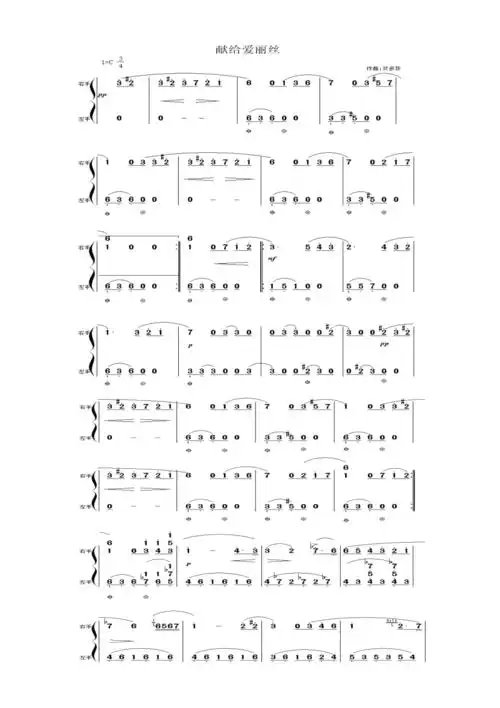 献给爱丽丝钢琴简谱3页双手