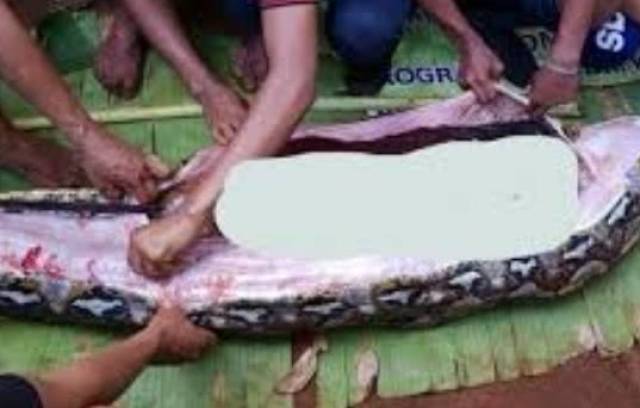 毛骨悚然,印度一女子被巨蟒整个吞下