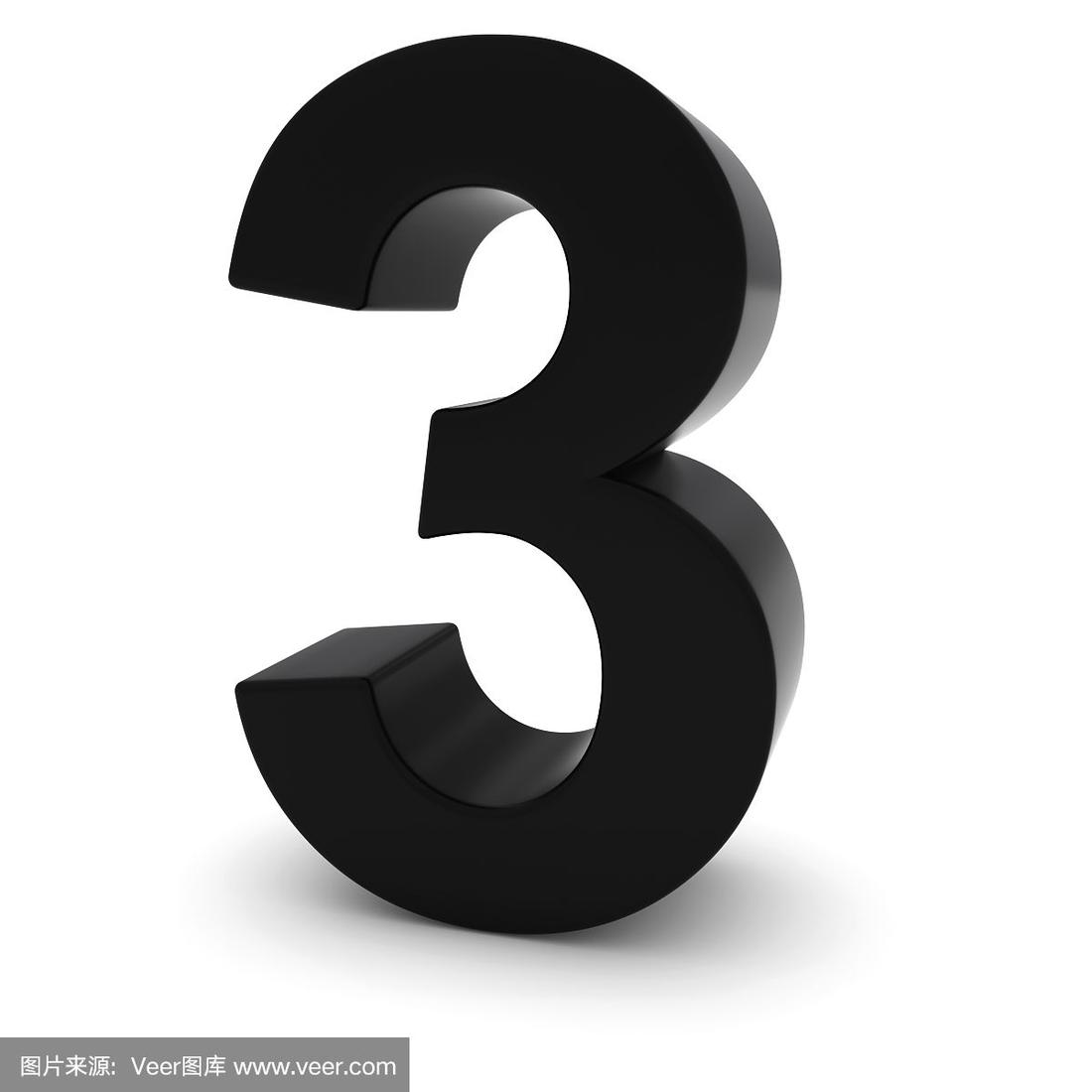 黑色3 - 3d数字3孤立在白色