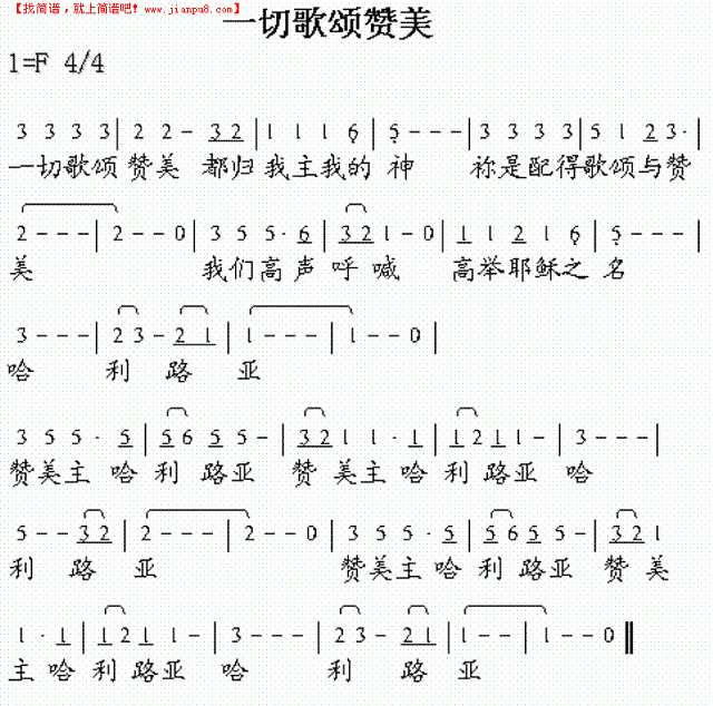 《一切歌颂赞美》简谱