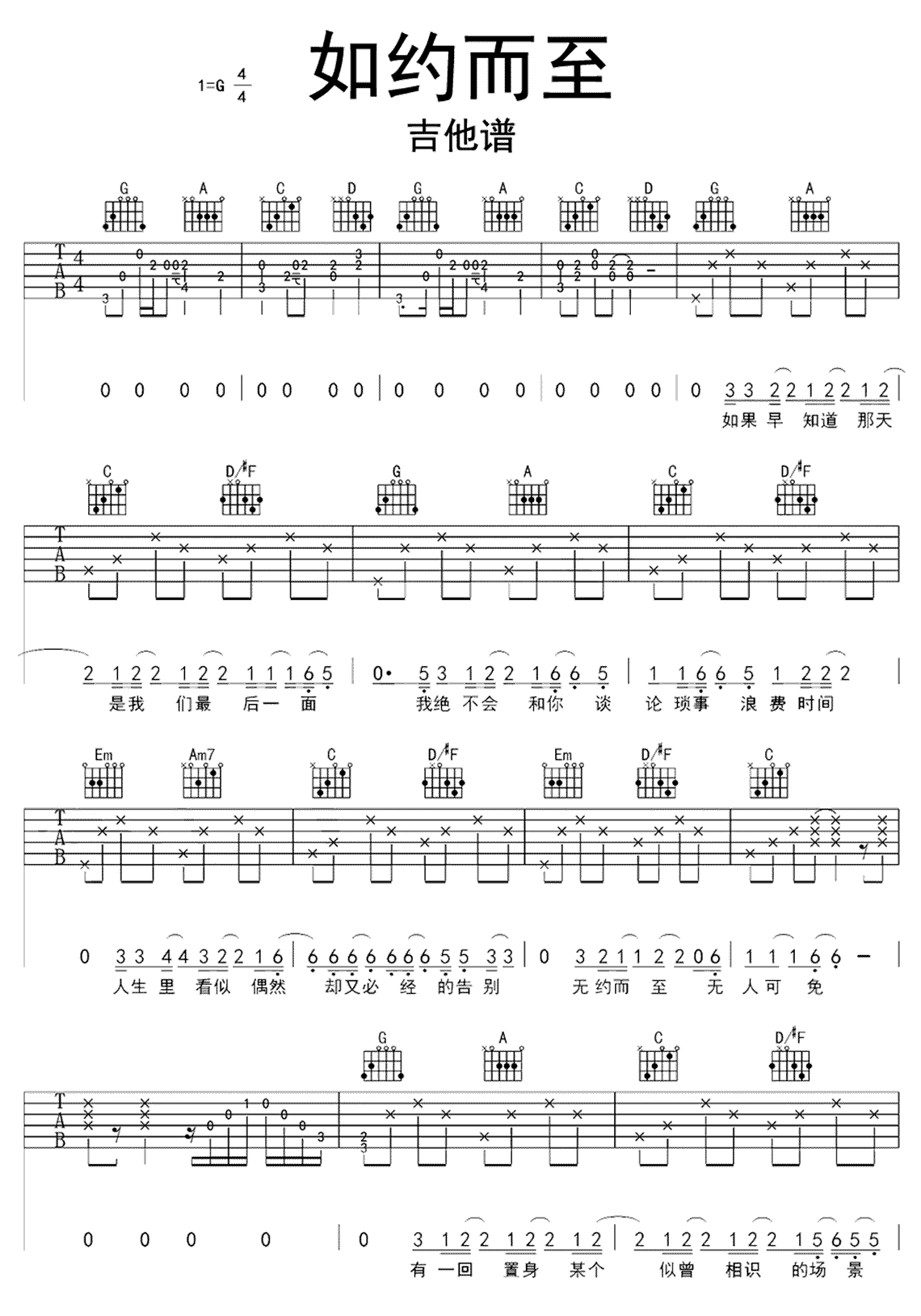 如约而至吉他谱