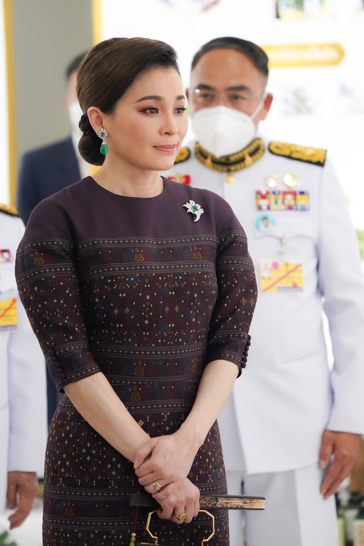 泰国王后苏提达穿银色服装好闪亮,戴流苏耳环有点俏皮!