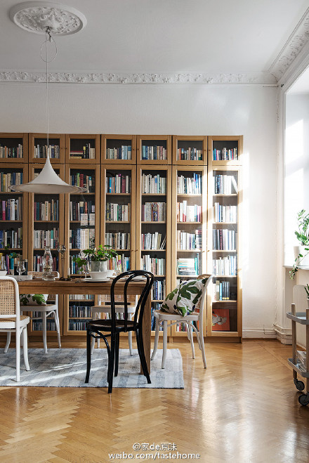 瑞典#的家:你也会在餐厅旁做一整面墙的书柜吗?