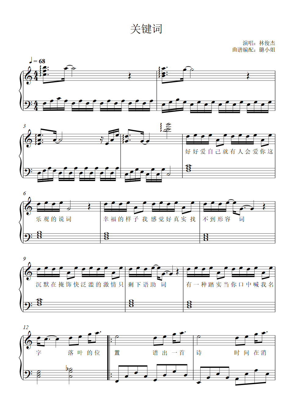 钢琴谱:关键词(林俊杰)