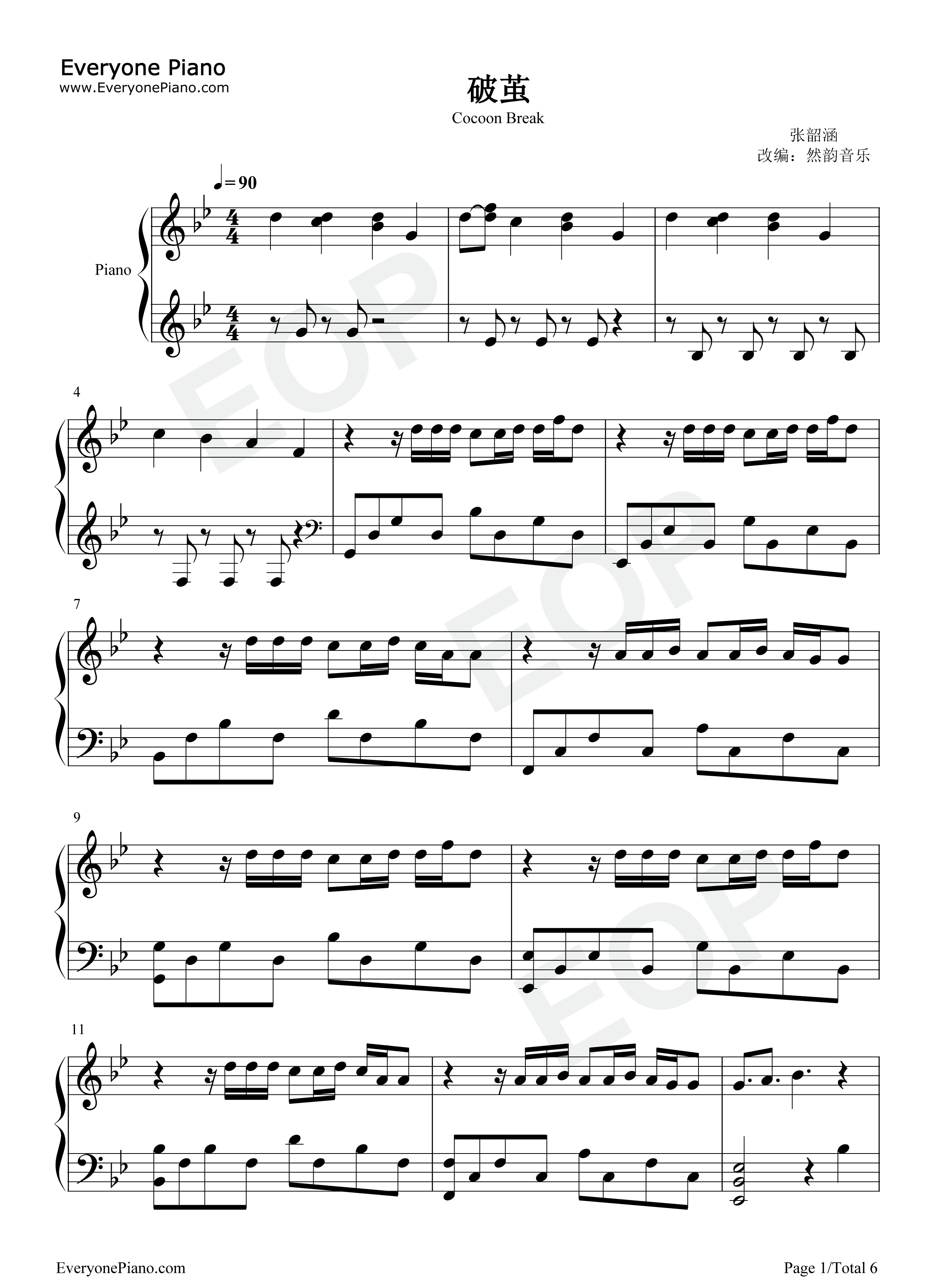 《破茧》-张韶涵 钢琴谱#钢琴弹奏