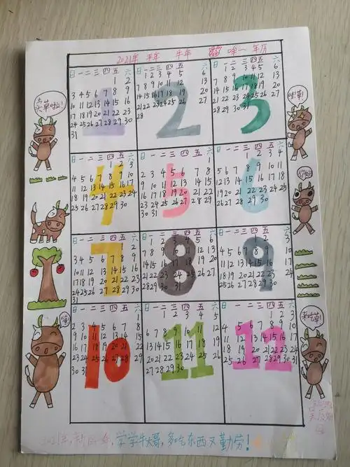 寒假第十天创意班手绘春节年历——2021画牛添牛气
