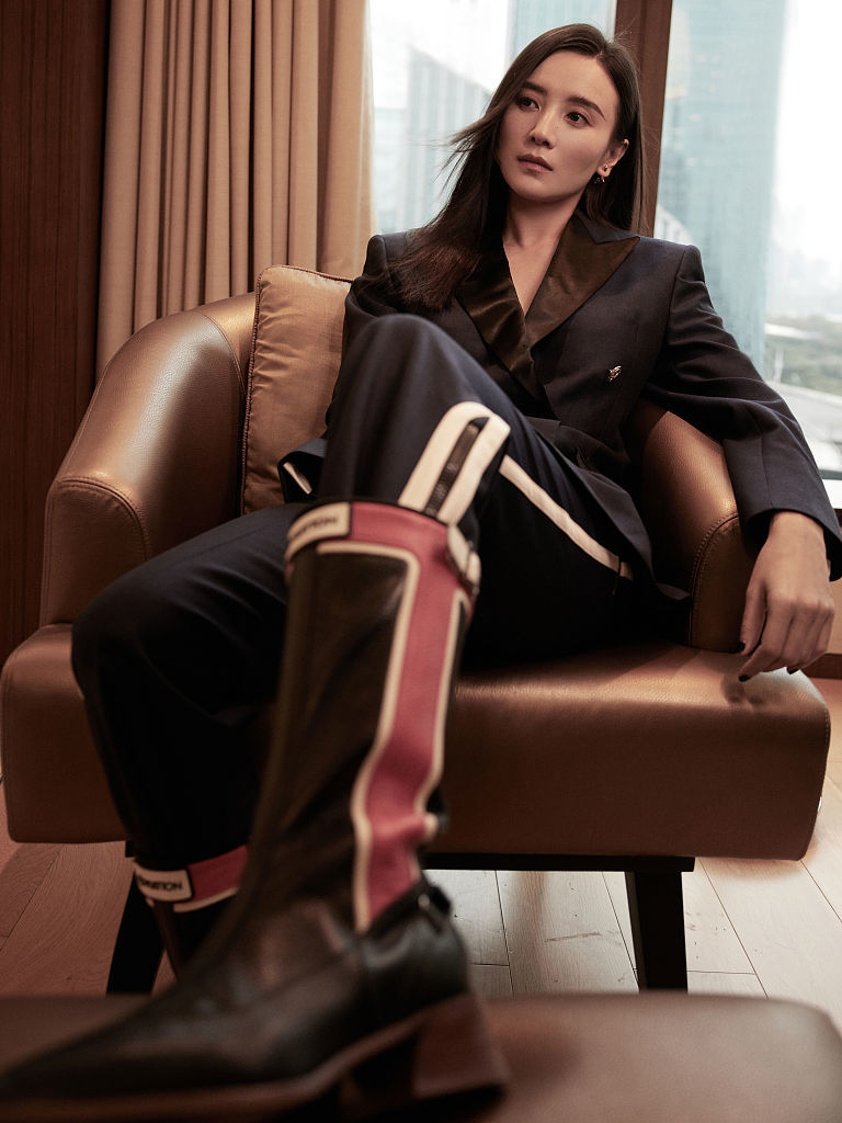 宋佳晒最新时尚大片,穿深v职业装大秀事业线,化雀斑妆韵味满满