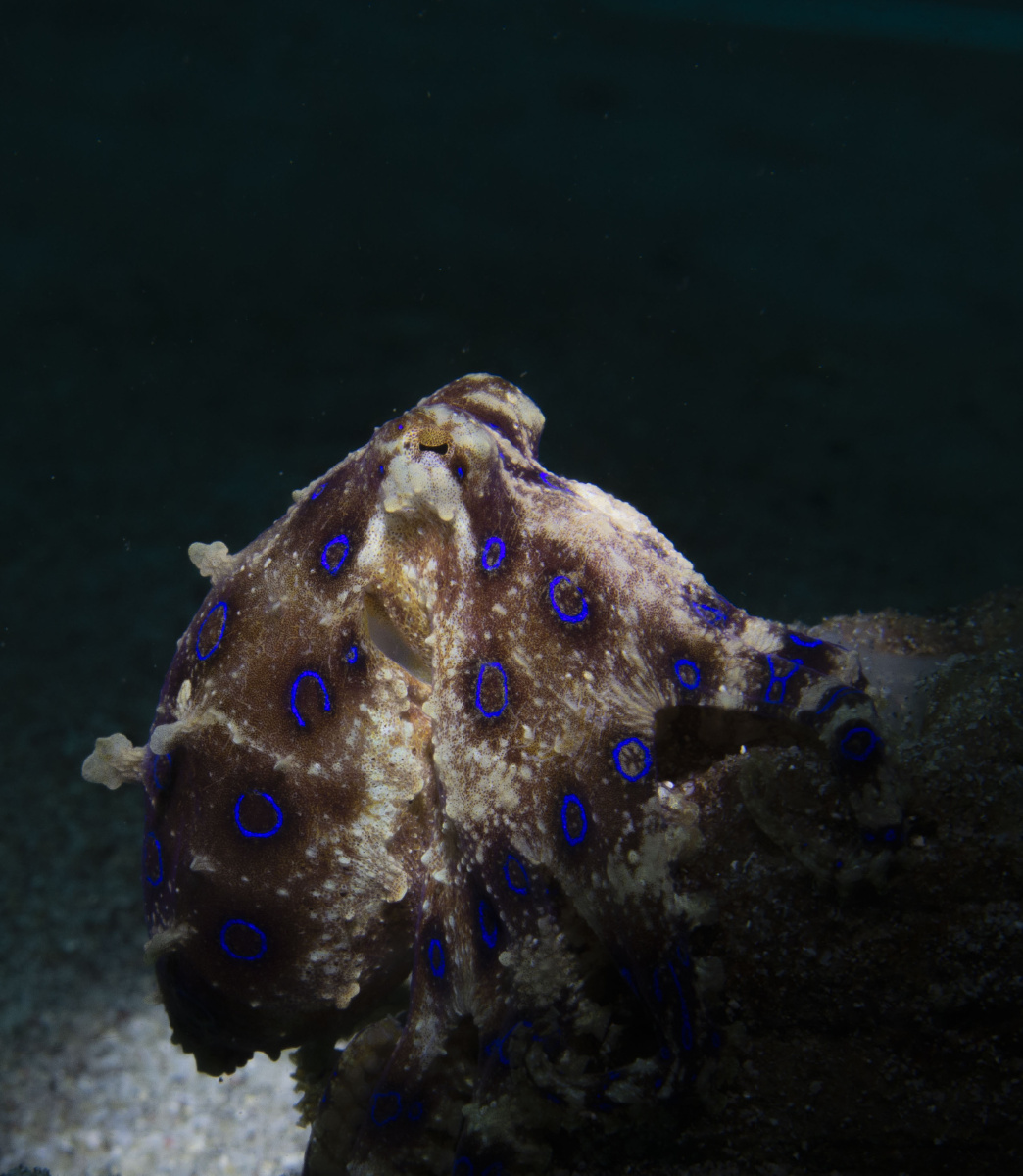 发出耀眼蓝光美丽有毒生物——蓝环章鱼
