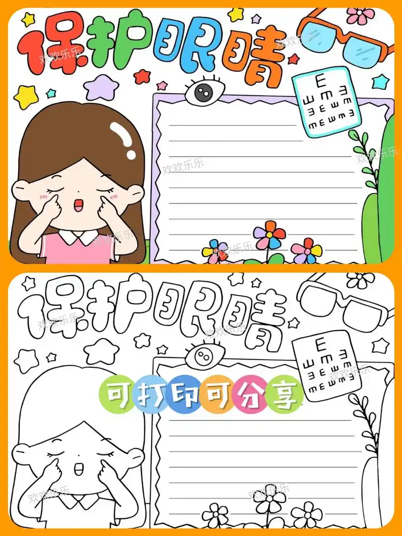 爱眼日手抄报电子版模板线稿打印涂色保护视力爱护眼保健操画小报