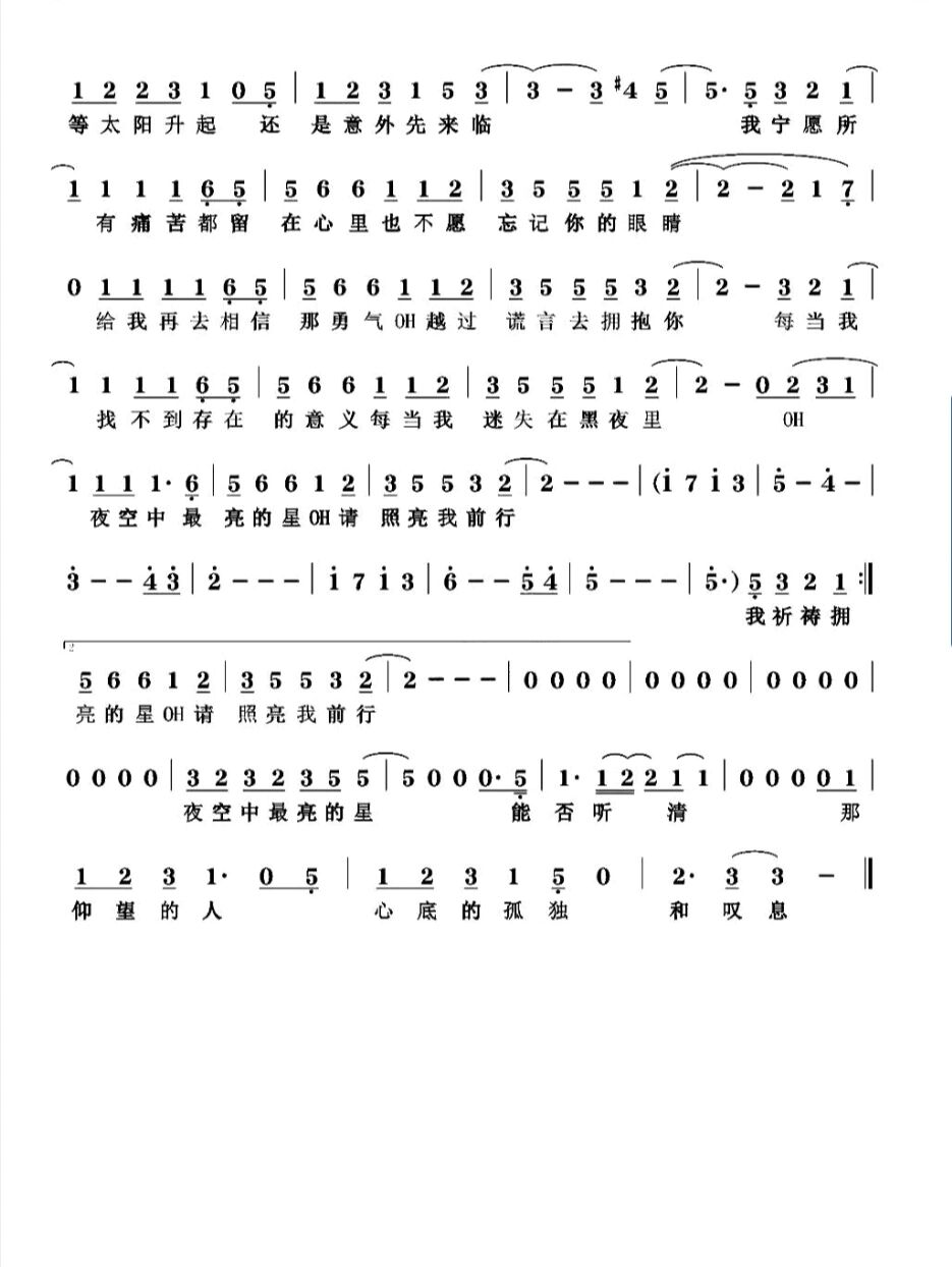 《夜空中最亮的星》简谱 《夜空中最亮的星》简谱