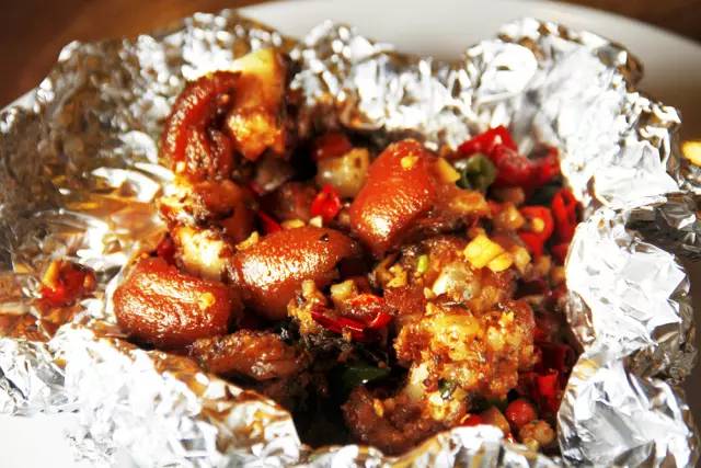 一品猪脚 锡纸包裹,避免了口感过于干硬.