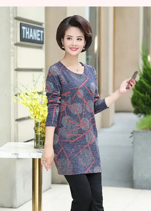 妈妈装中长款打底衫女中老年女装春秋长袖t恤中年妇女40-50岁上衣