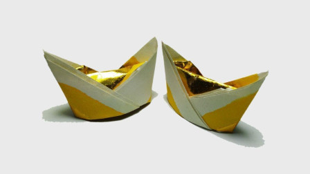 折纸金元宝,一张正方形纸就能折出来,简单易学的手工制作_哔哩哔哩