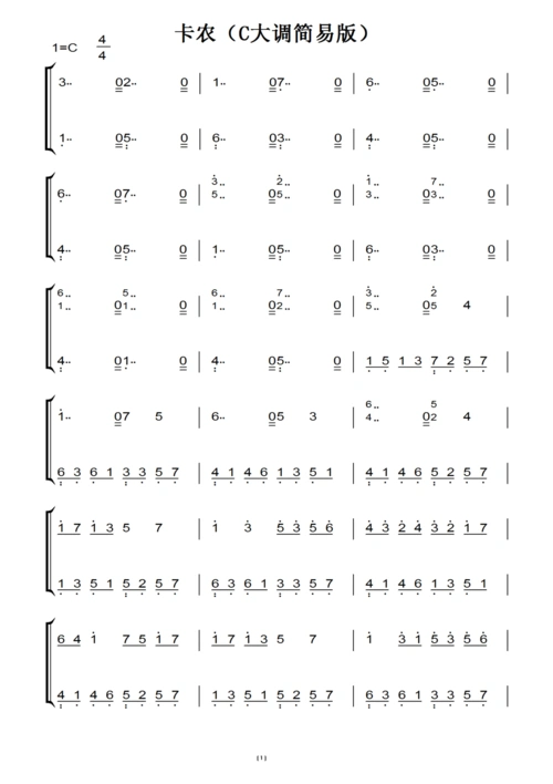 1 卡农(c调浓情版)帕赫贝尔(原版)钢琴双手简谱 钢琴谱