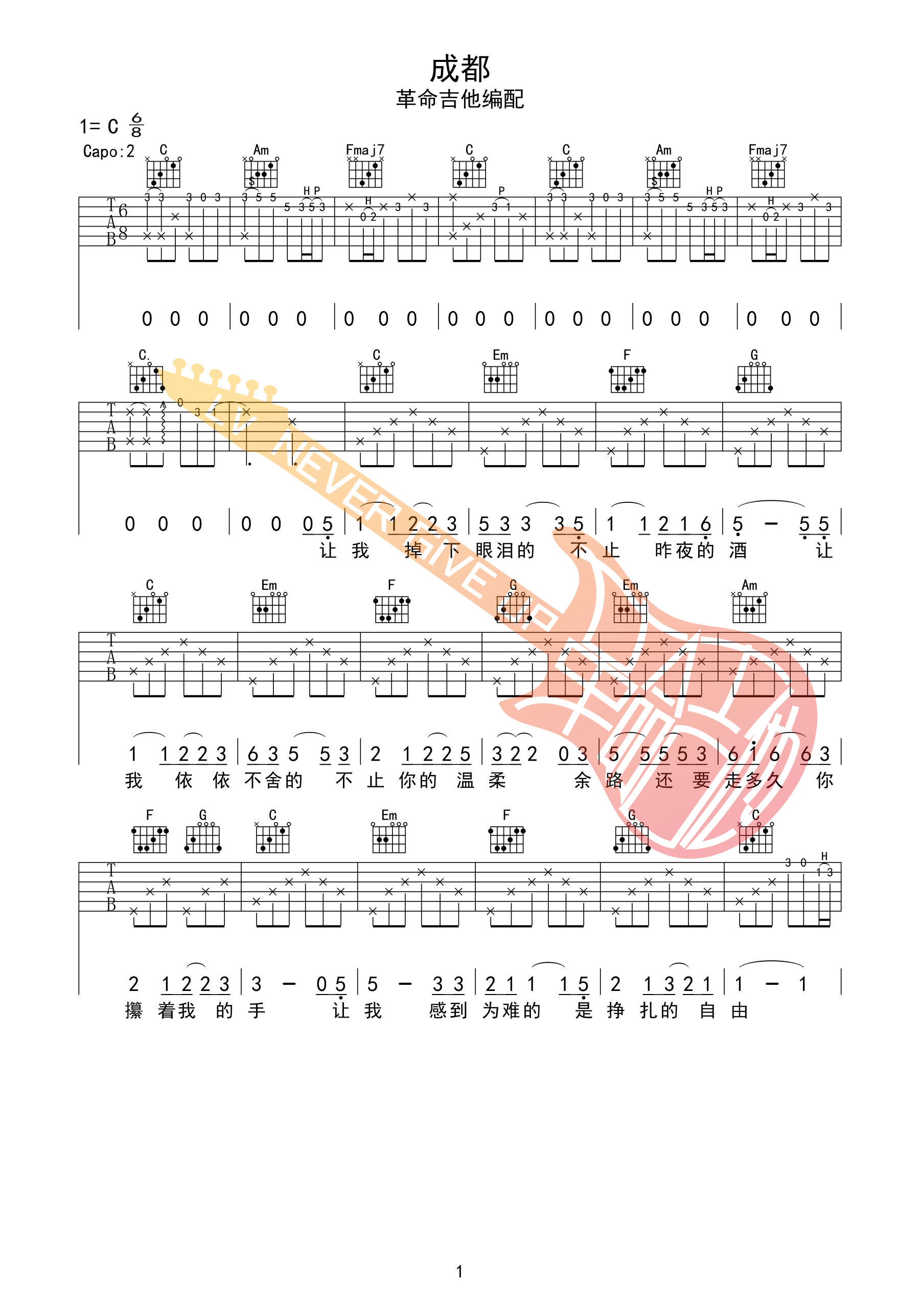 成都c调六线吉他谱-虫虫吉他谱免费下载