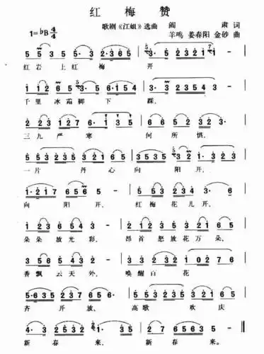 红梅赞_简谱_歌谱_曲谱_吉他谱_五线谱