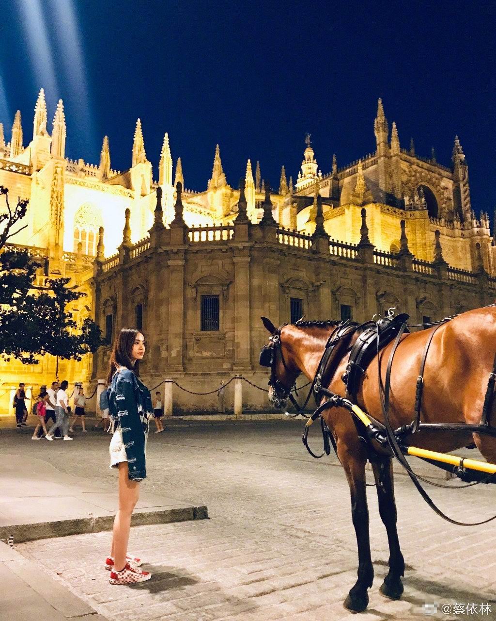 蔡依林看着马车,背后是城堡,这也太像是专辑的封面或是mv里的场景,谈
