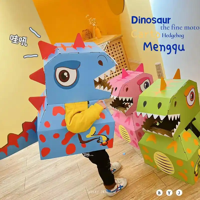 纸箱恐龙儿童可穿戴机器人纸箱玩具恐龙动物纸壳纸盒纸板箱幼儿园手工