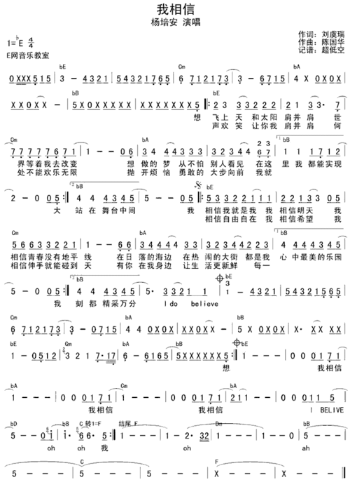 【我相信(杨培安演唱版)简谱】我相信(杨培安演唱版)简谱
