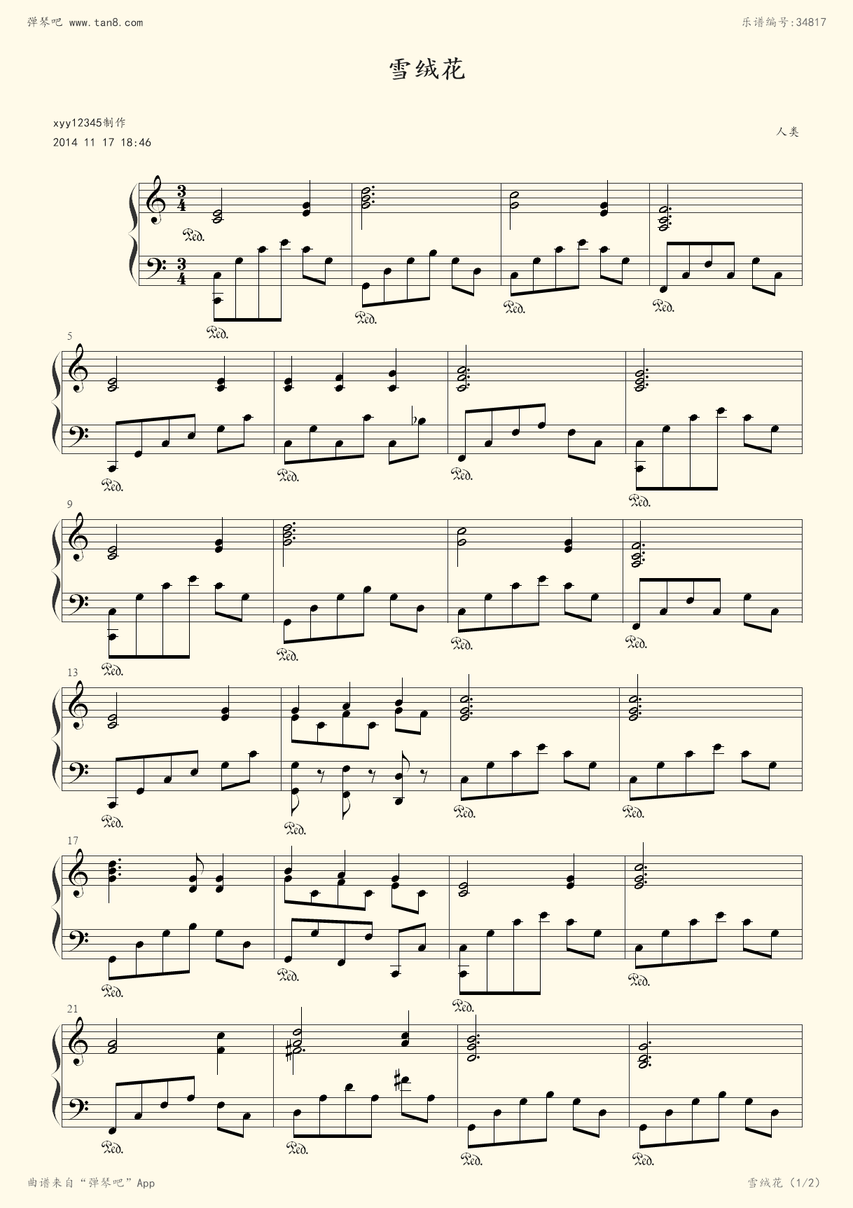 小汤3难度,轻柔好听,《雪绒花》小汤3难度,轻柔好听钢琴谱,《雪绒花》