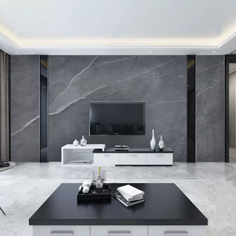 现代灰色大理石纹家居岩板微晶石电视背景墙