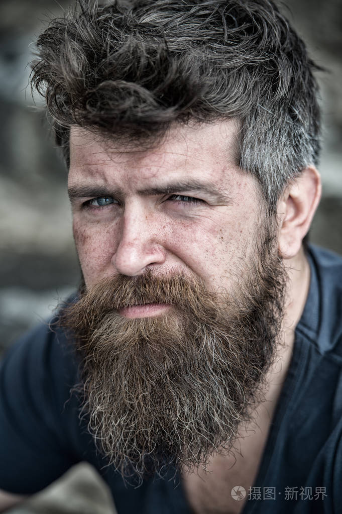 胡子和胡子的男人关门脸上长胡子的男人看起来很悲伤很苦恼有问题有