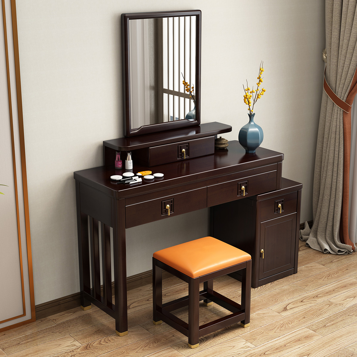 新中式金丝檀木实木梳妆台化妆桌椅组合现代简约禅意卧室梳妆家具