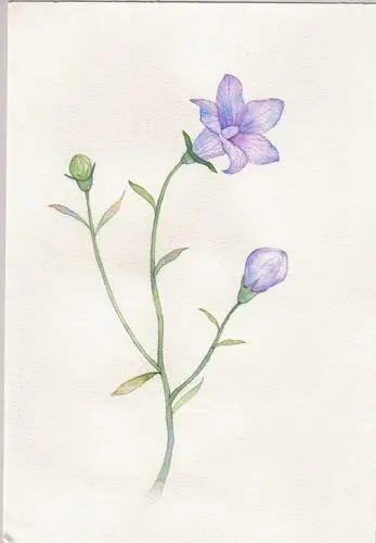 桔梗成品图如下: 先用铅笔画出大概图形,花苞的外型有点像钻石,花朵