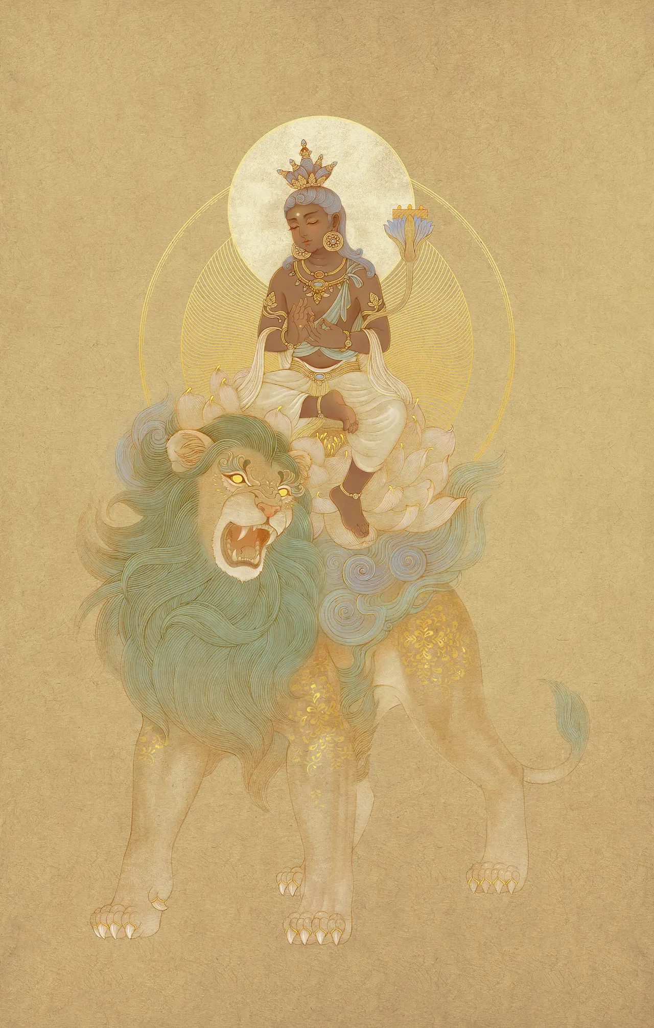 骑金色孔雀童子相的文殊菩萨