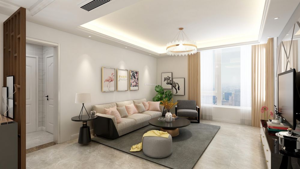 现代风格125平客厅背景墙装修效果图片大全