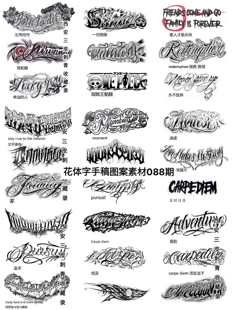 花体英文_纹身图案手稿图片_墨客_ann的纹身作品集