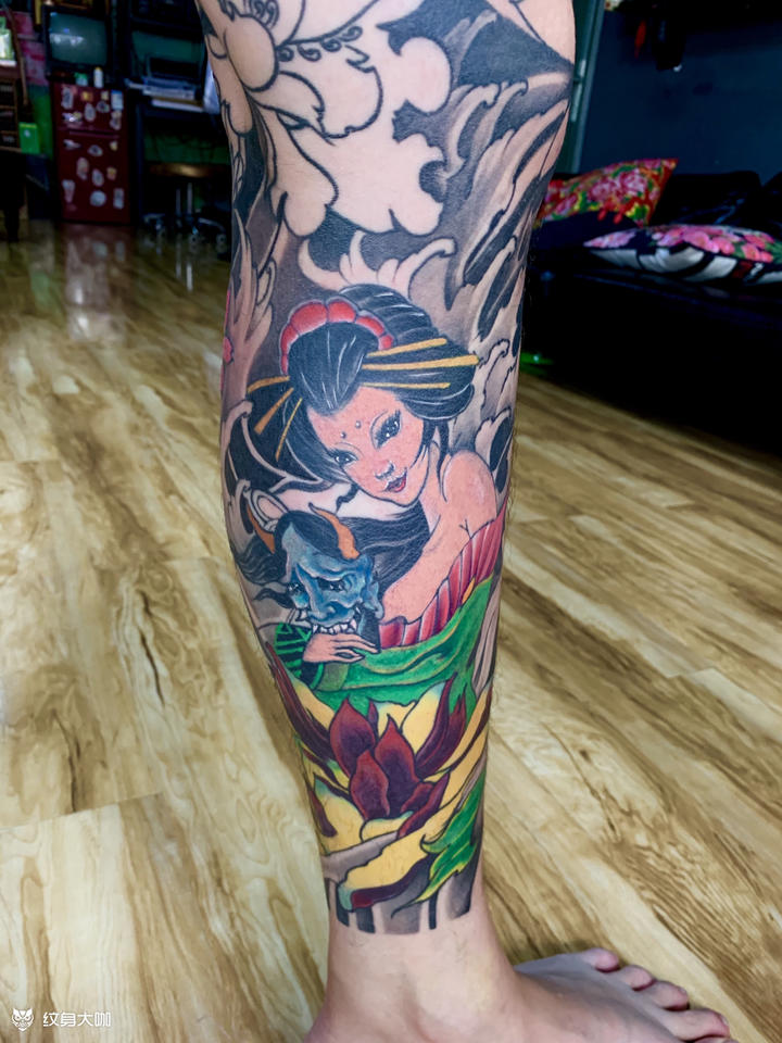 小腿艺妓_纹身图案手稿图片_肖峰的纹身作品集