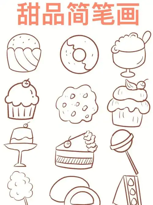 冰激淋甜点美食手绘简笔画分享(带线稿图) 用一张冰激淋蛋糕简笔画和