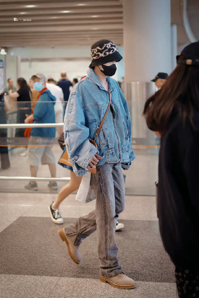 白敬亭回国啦牛仔外套搭配针织渔夫帽造型满满的清爽少年感