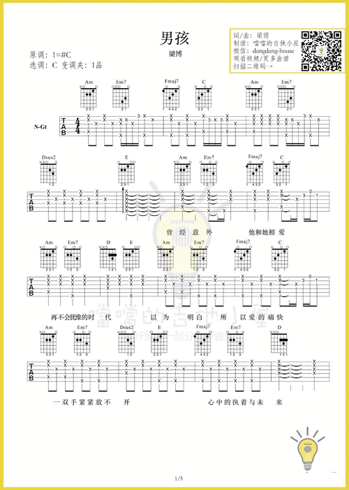 男孩吉他谱 c调伴奏谱_噹噹的吉他小屋编配_梁博1