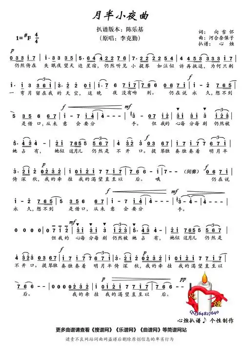 歌曲简谱陈慧娴月半小夜曲免费高清简谱流行弹唱网